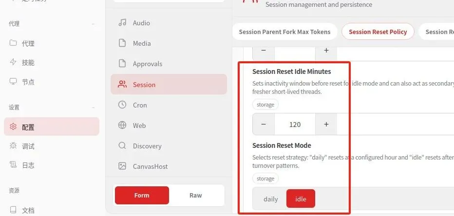 每日重置:默认为网关主机本地时间的凌晨 4:00。如果会话的最后更新时间早于最近一次的每日重置时间,则该会话被视为陈旧。