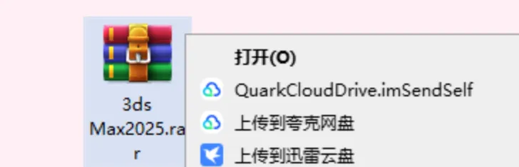 1.找到下载好的3ds Max 2025安装包,解压安装包:①鼠标右击【3ds Max 2025】压缩包②选择"解压到当前文件夹"⚪注意:由于压缩包带有激活文件,解压前需关闭杀毒软件
