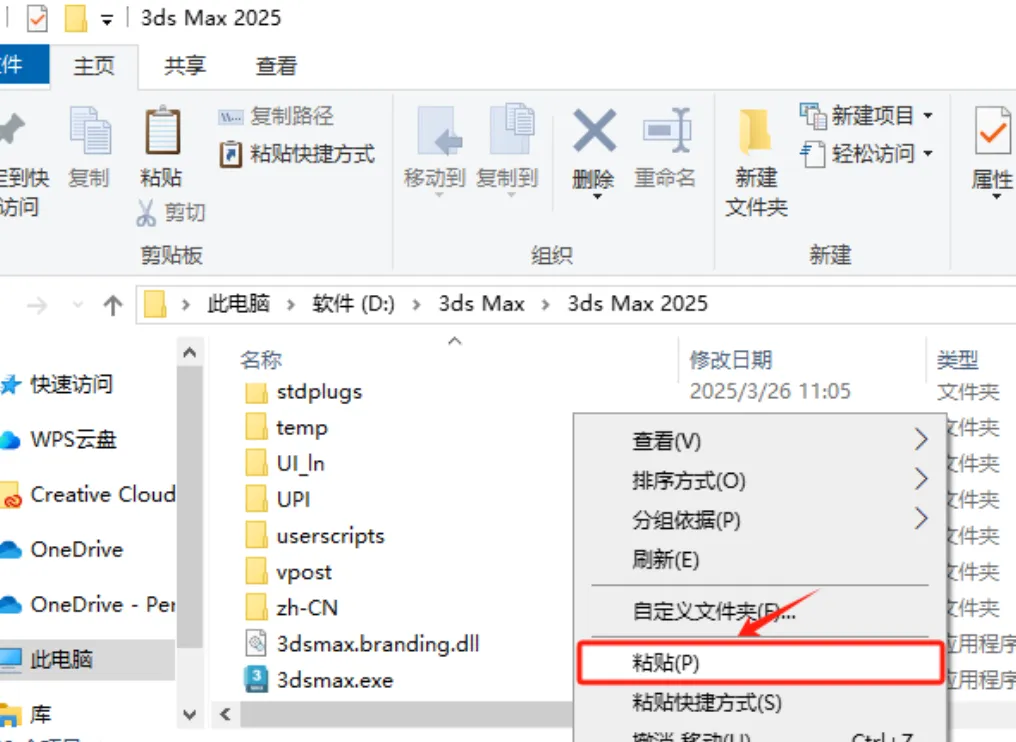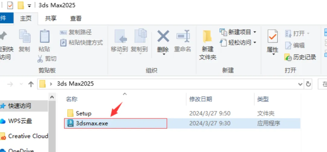 4.打开解压后的【3ds Max 2025】文件夹,复制 3dsmax 文件(快捷键:Ctrl+C)