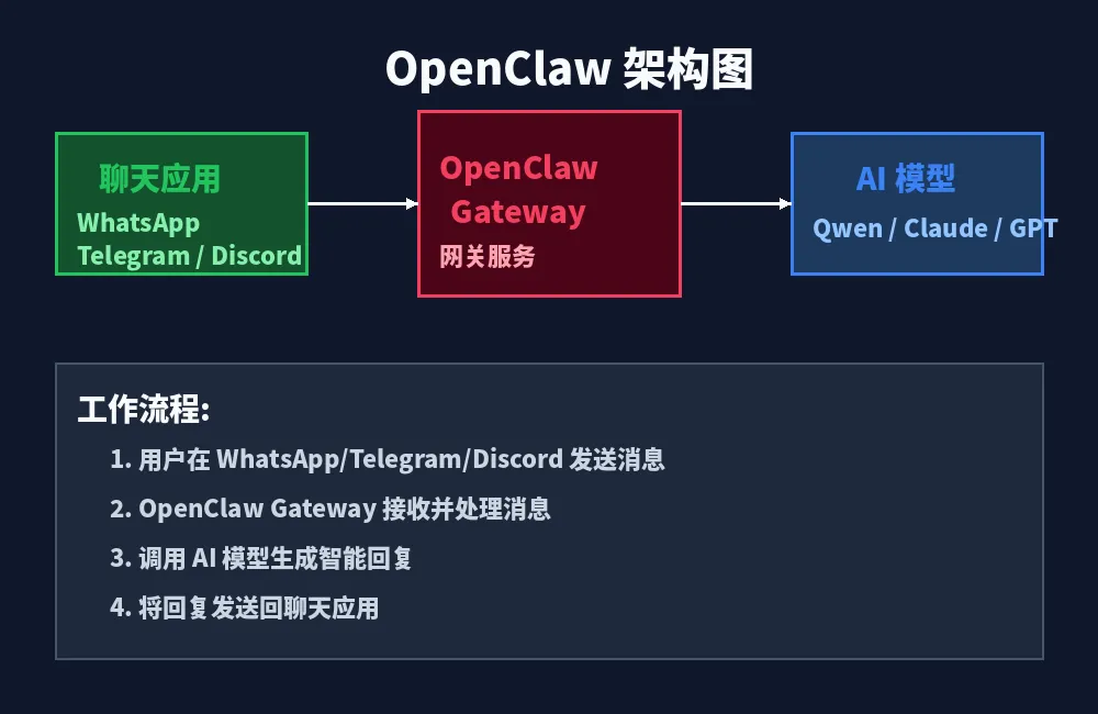 OpenClaw 是一个自托管的 AI 助手网关,让你可以通过 WhatsApp、Telegram、Discord 等聊天工具与 AI 助手对话。它运行在你自己的服务器上,数据完全由你掌控。多渠道:一个网关服务 WhatsApp、Telegram、Discord 等