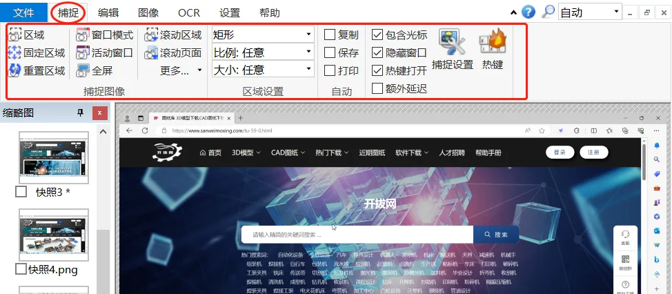 截取任何区域、窗口、按钮