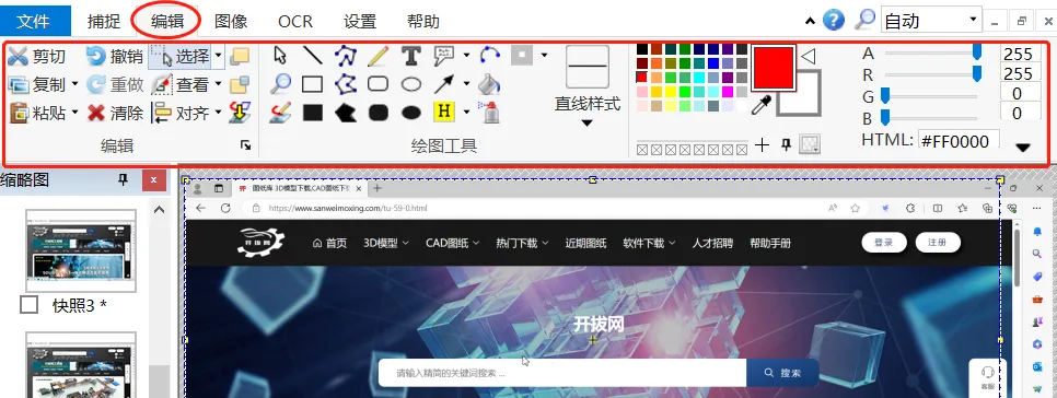 电脑截图截屏工具Hyper.snap可以自由定义截图区域的形状大小,可以是椭圆形,圆形或是徒手圈出截图区域形状大小,同时在[图像编辑]功能,将图像做成更多效果。