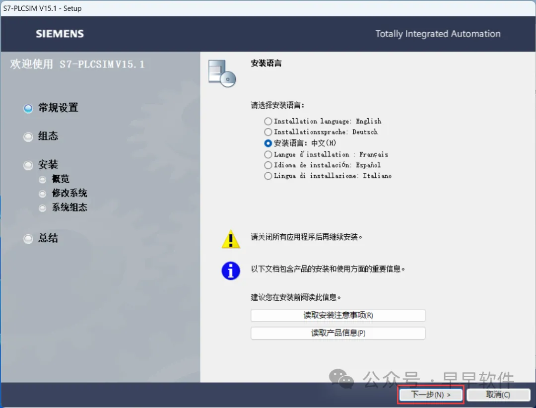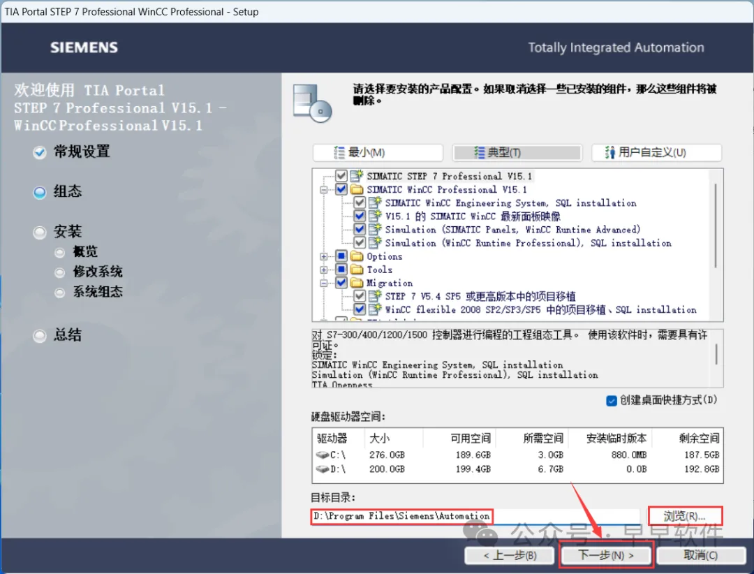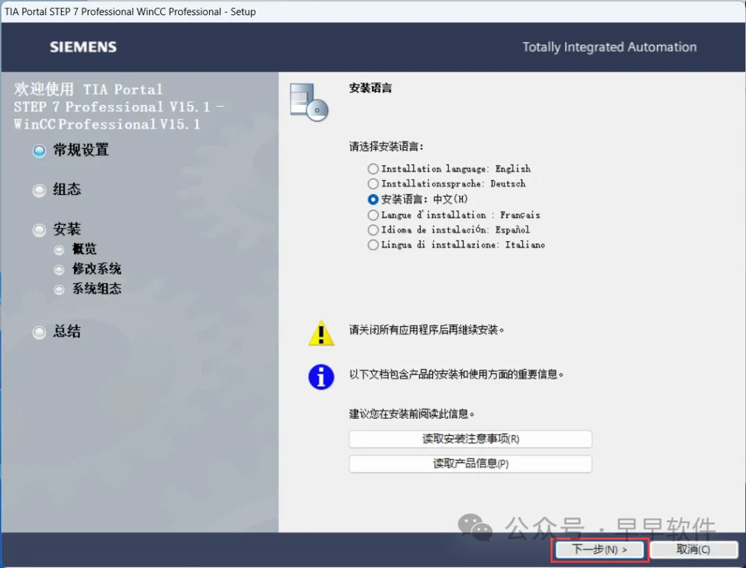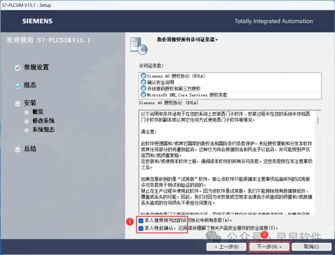 29、依次点击【TIA Portal V15.1】,全选【短名称】,勾选【工作地的单一授权“SISL”】,再点击【安装长密钥】
