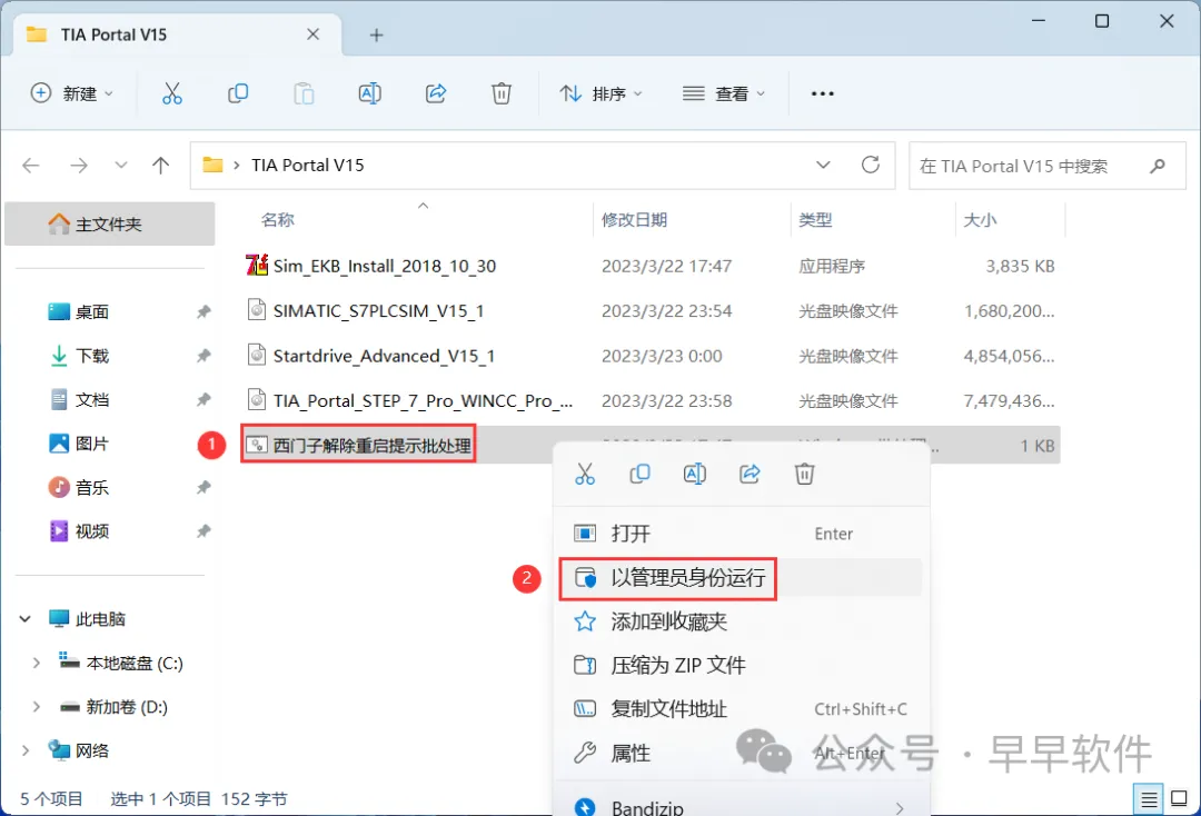 15、找到【西门子解除重启提示批处理】文件,右键选择【以管理员身份运行】它