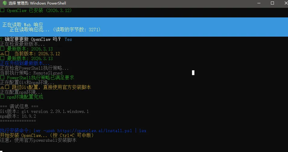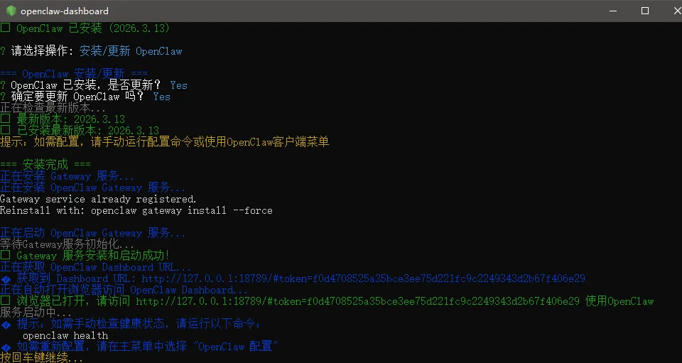 一键安装/更新:自动检测并安装最新版本的 OpenClaw