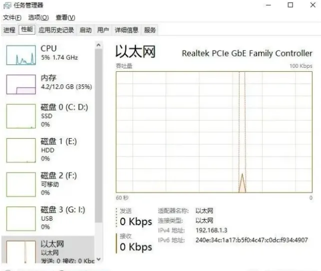 2.打开电脑的「任务管理器」(Ctrl+shift+esc)点击「性能」一栏的下面打开资源监视器(win10版本其他系统可以参考!)