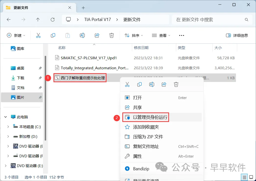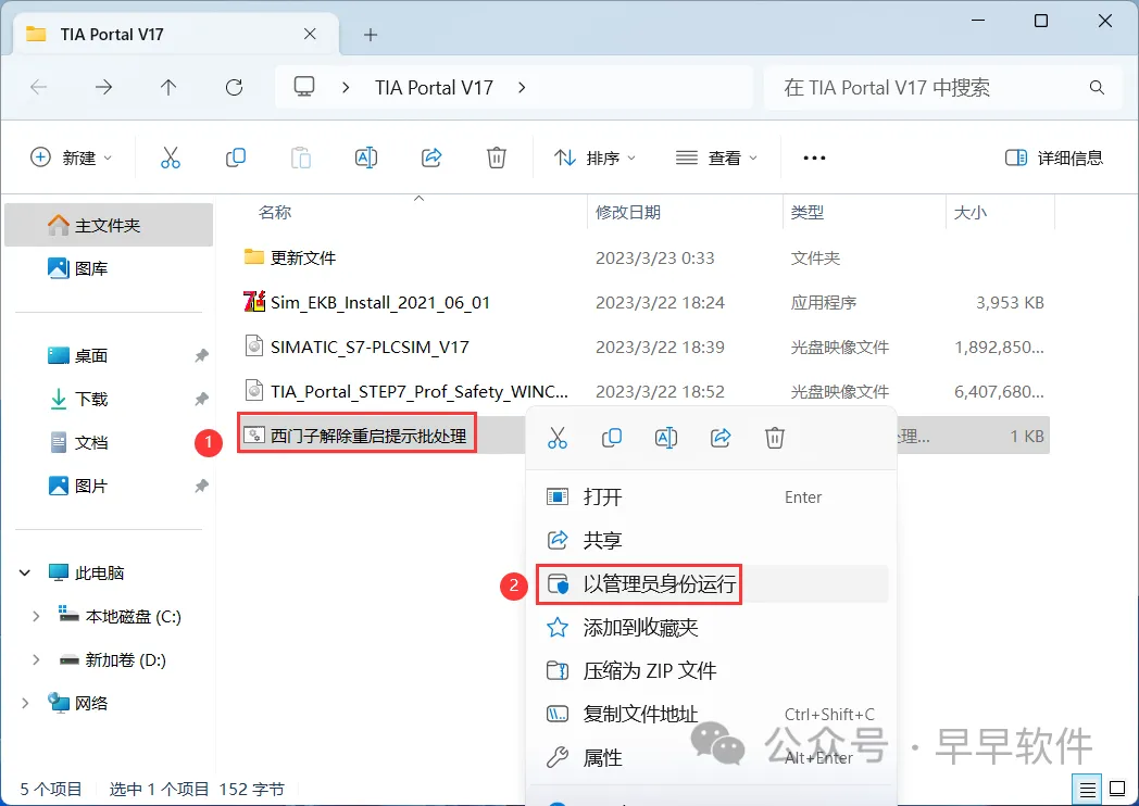 29、找到【西门子解除重启提示批处理】文件,右键选择【以管理员身份运行】它