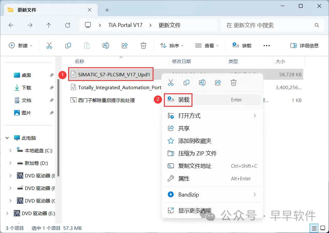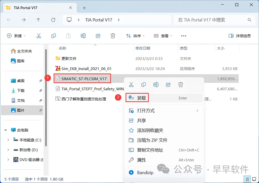 42、找到【SIMATIC_S7-PLCSIM_V17_Upd1】文件,右键点击【装载】