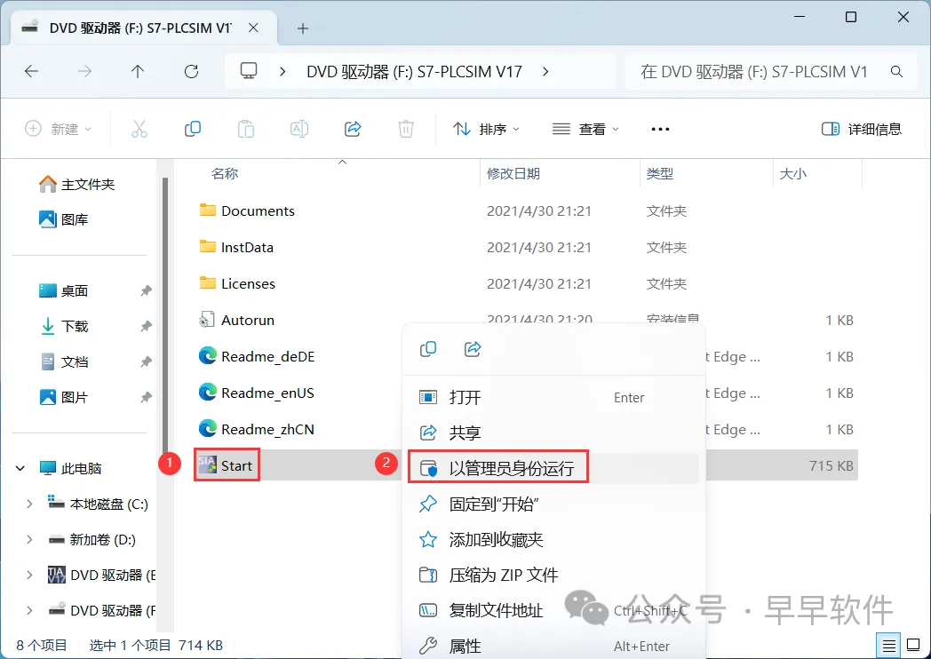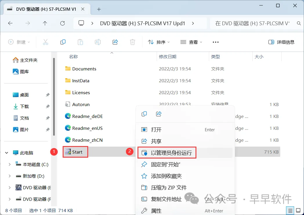 51、回到TIA Portal V17文件夹,找到【Sim_EKB_Install…】应用程序,右键选择【以管理员身份运行】它