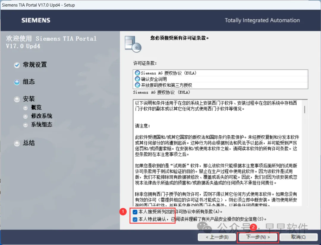 12、勾选【我接受】,再点击【下一步】
