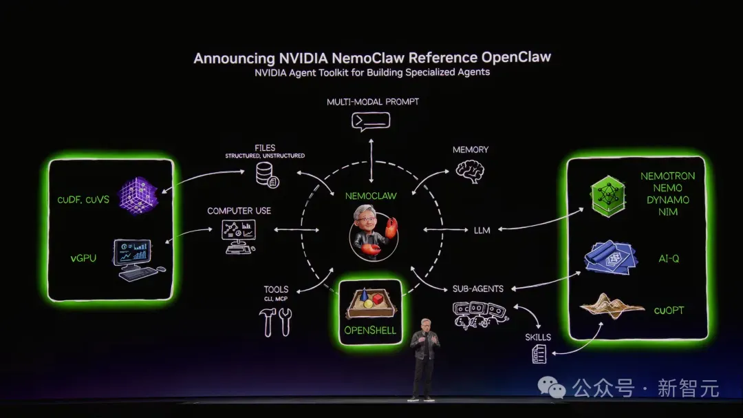 第一,内置OpenShell运行时,给Agent加上安全沙箱和策略引擎,让企业敢用;