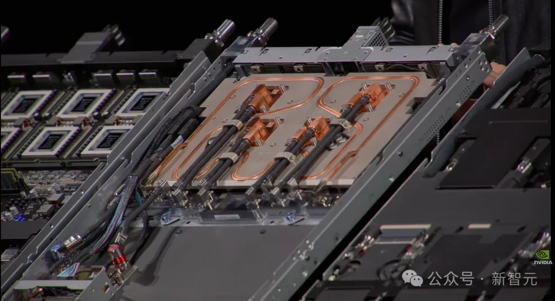 这些GPU装进全新的Kyber机架——计算节点垂直插入,前面是计算,后面是NVLink交换,取代传统铜缆变成中板直连。