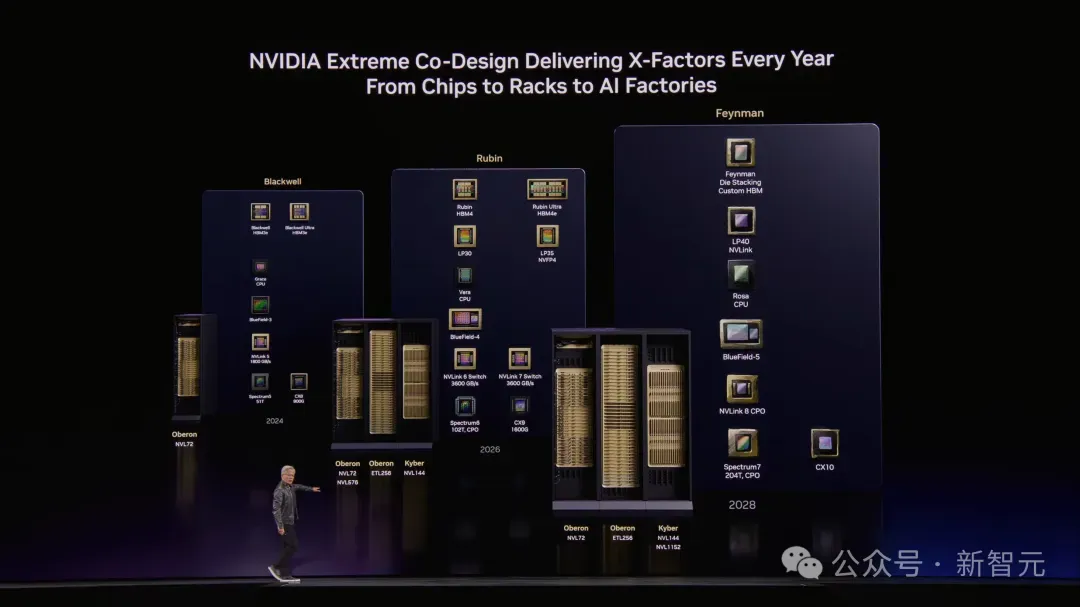 台上,老黄展示了Vera Rubin系统,进化速度是肉眼可见的——