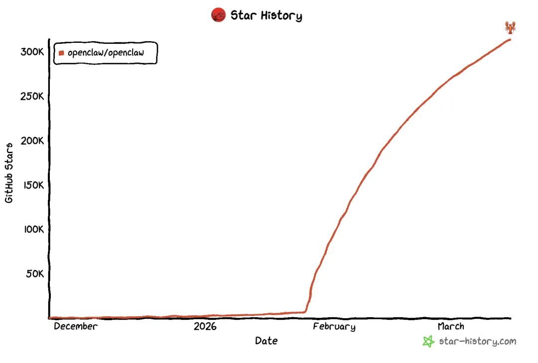 特别是从1月底开始,大家的社媒渠道就被 Openclaw 刷屏了。截至2026年3月初,Openclaw已经超越了React和Linux,成为Github上Star数最多的开源项目。。。很魔幻,但确实又侧面反映了当下人们的AI焦虑。