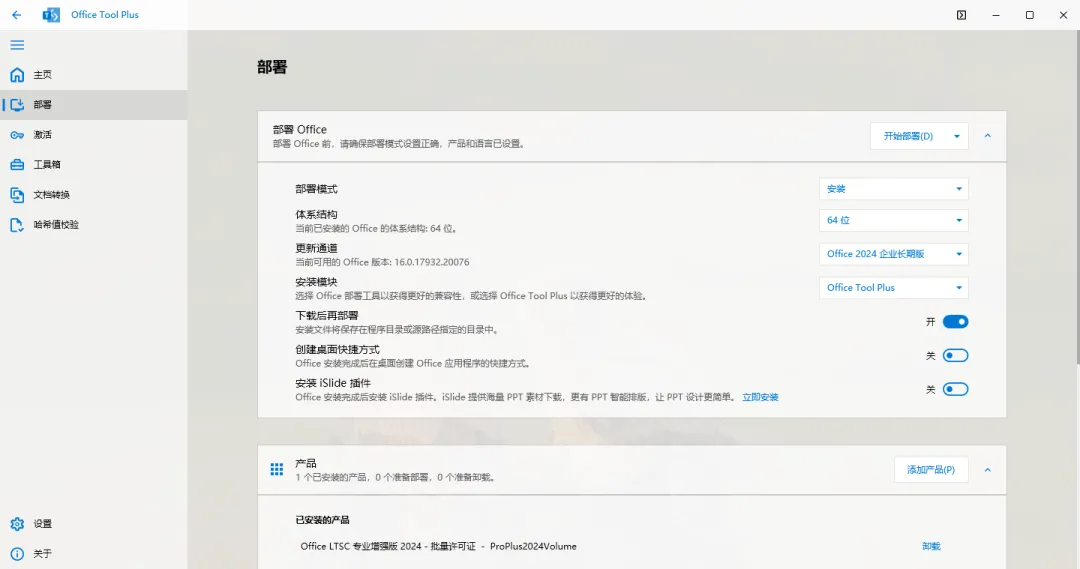 简单来说,Office Tool Plus是一个基于微软官方Office部署工具(ODT)制作的图形化部署管理器。它不是什么破解工具,而是帮你用最合法、最安全的方式,从微软服务器下载最纯净的Office,并完成激活和管理的一站式解决方案。