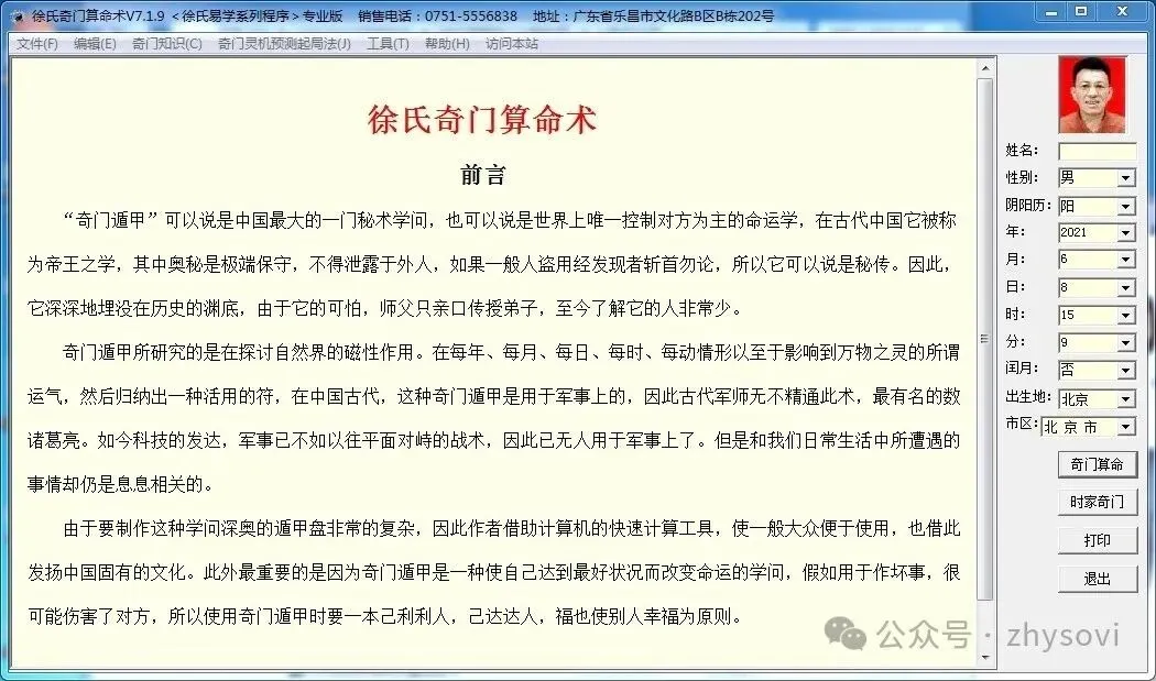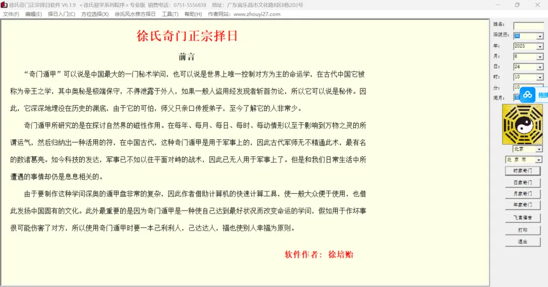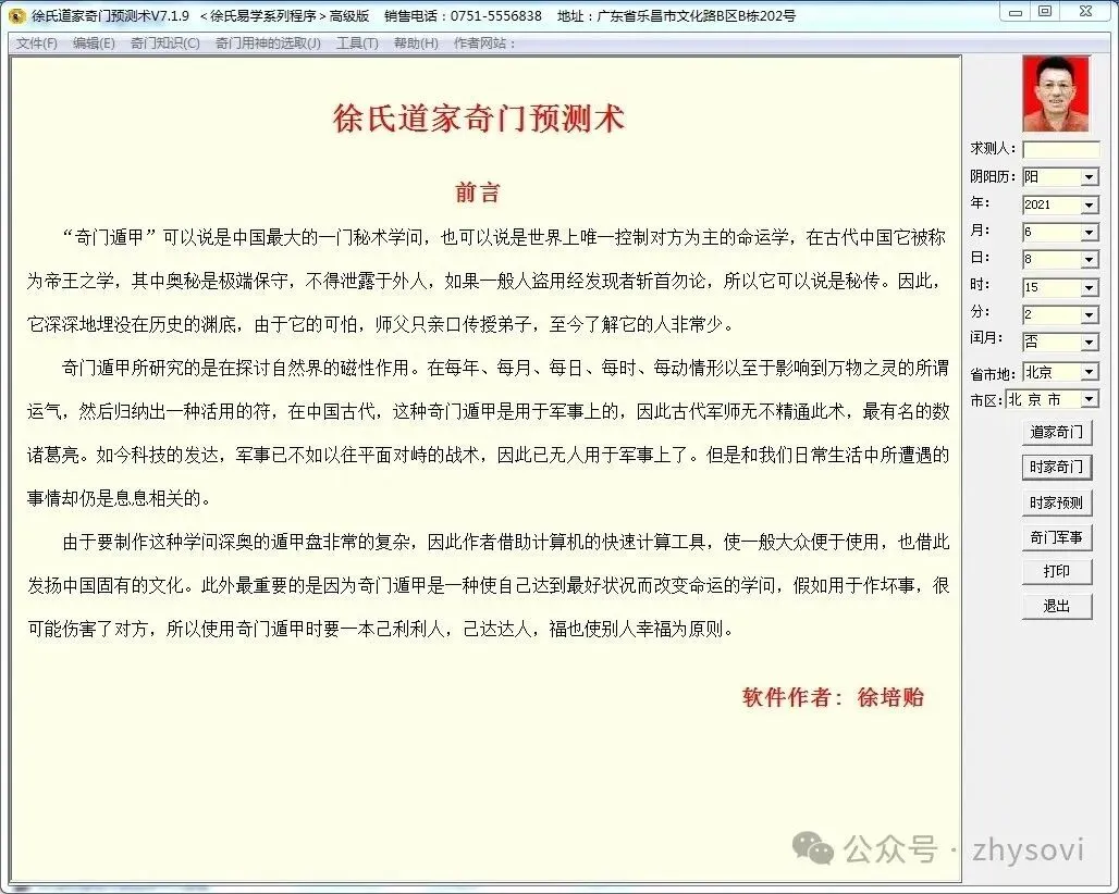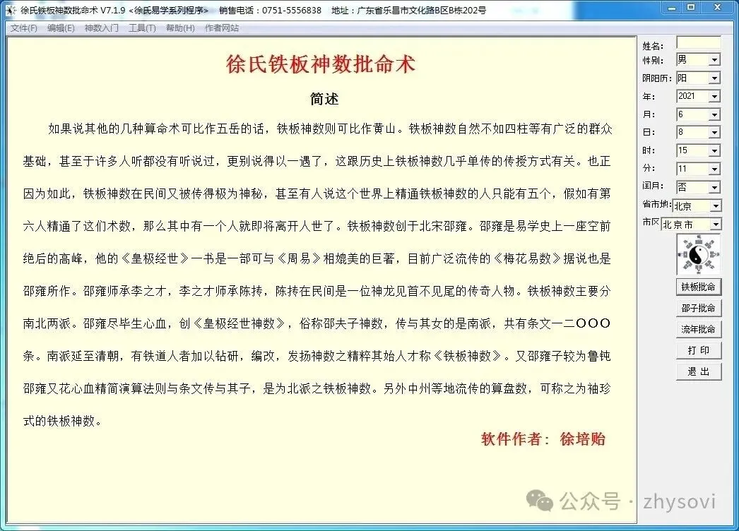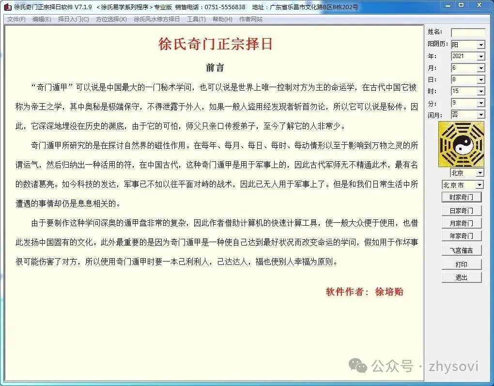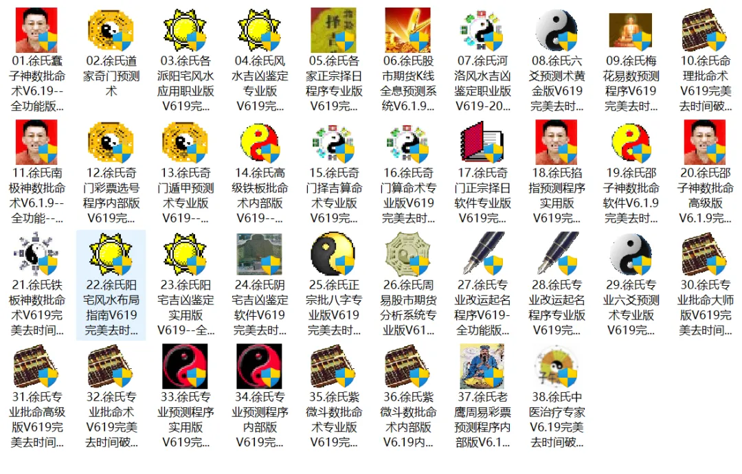 电脑版徐氏周易软件全套38个,包括八字,起命,择吉,阴阳宅风水,奇门,彩票,紫微,六爻梅花,股票期货,邵子神数,铁板神数,蠢子,南极神数,七星批命,奇门批命,中医等等有了这些软件就可以开馆了。具体内容如下: