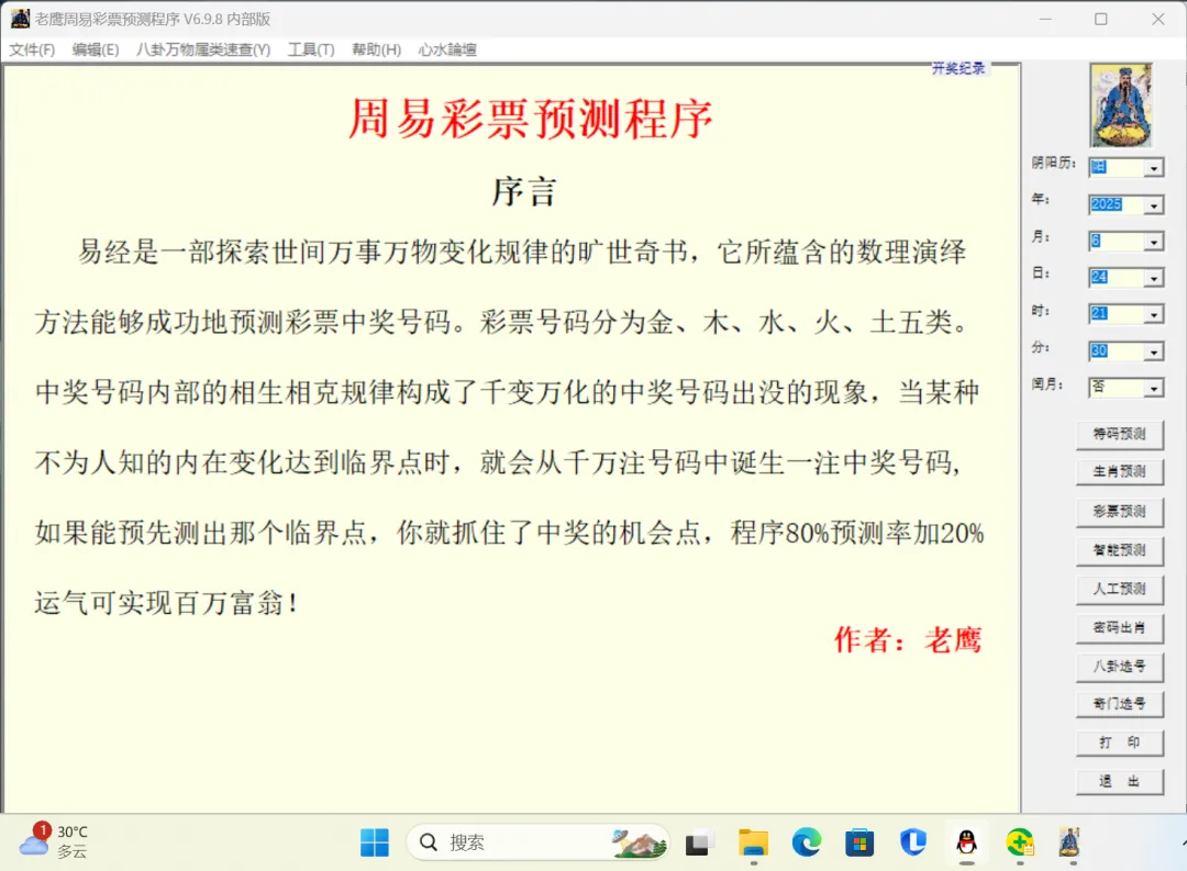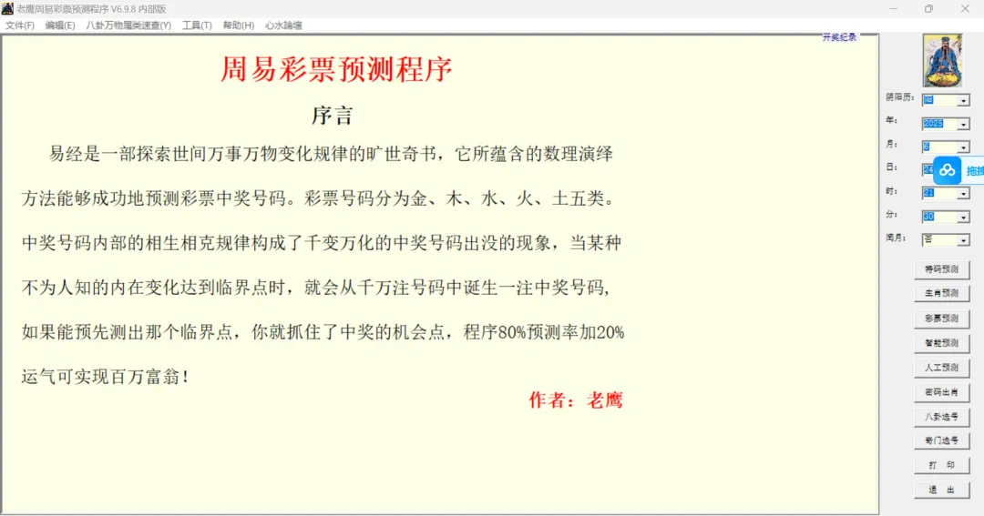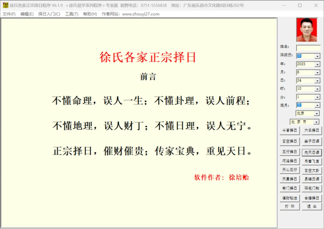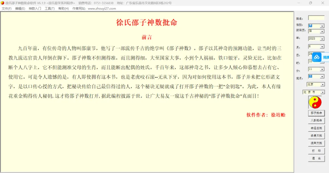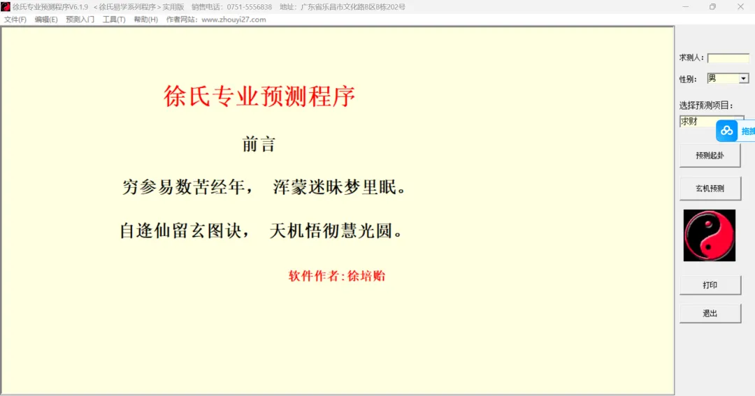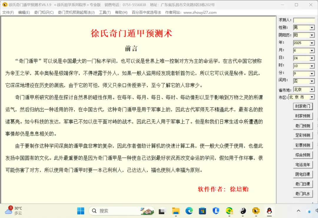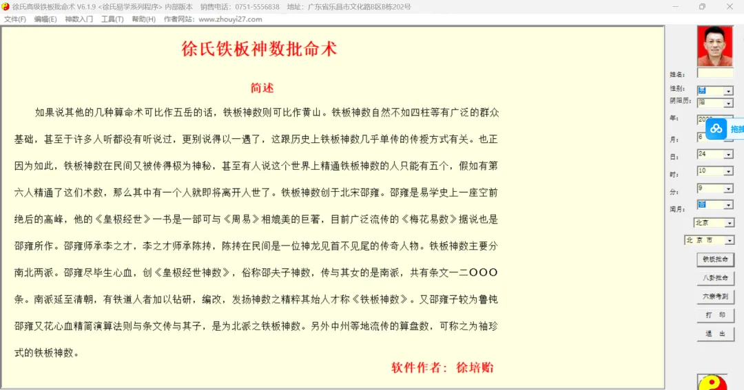 电脑版徐氏周易软件全套38个,包括八字,起命,择吉,阴阳宅风水,奇门,彩票,紫微,六爻梅花,股票期货,邵子神数,铁板神数,蠢子,南极神数,七星批命,奇门批命,中医等等有了这些软件就可以开馆了。具体内容如下: