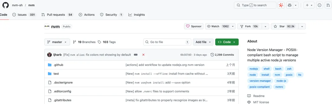 NVM是一个NodeJS的多版本控制器,对于开发人员来说更加需要这个,我们可以在GitHub上边找到这个软件的安装方法。