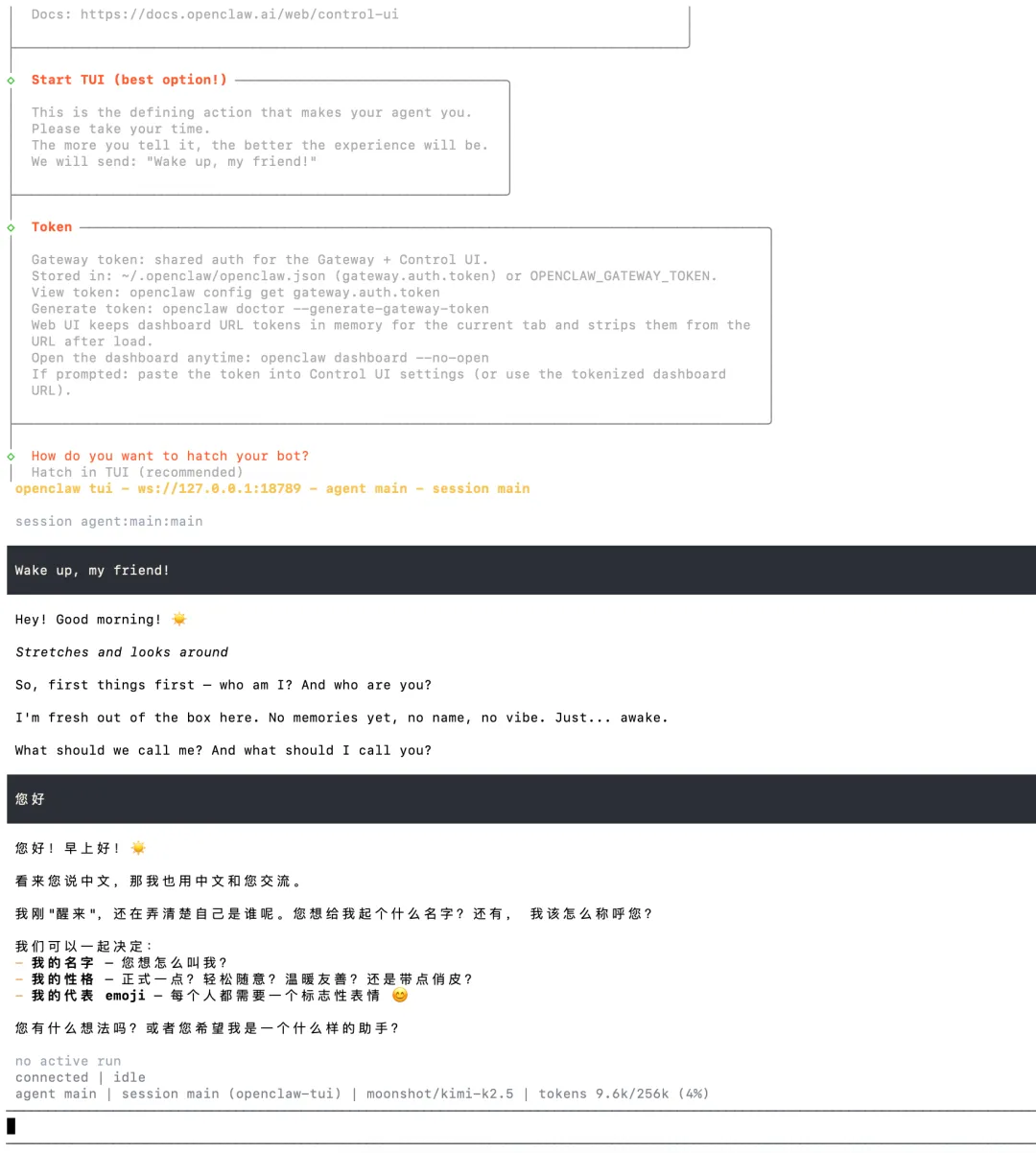 所有设置都搞定之后,后面会让我们重启OpenClaw的Gateway,同时提供了Web UI和TUI,所谓TUI就是terminal UI,有点claude code那味了。