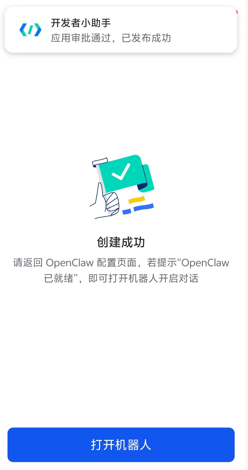 npx -y @larksuite/openclaw-lark-tools install跑完这个命令之后我们可以安装飞书的插件,然后就可以得到一个二维码,扫码之后飞书会自动帮我们创建一个Bot,然后设置好对应的权限。