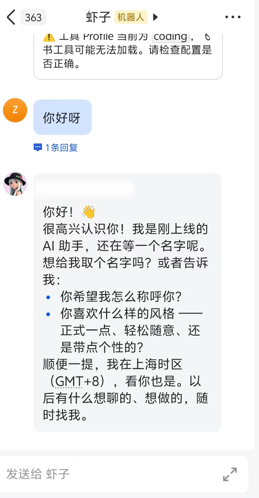 我会先使用/feishu start试探一下。然后就可以和openclaw在飞书里聊天了。