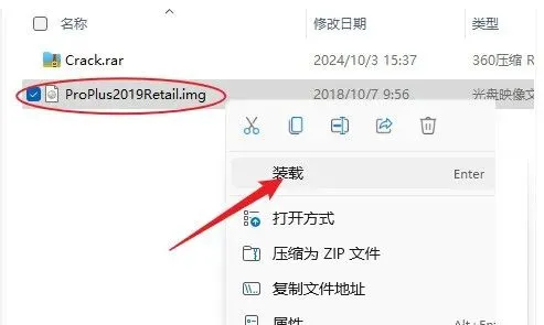 3.鼠标右键点击【ProPlus2019Retail】选择【装载】。(如果没有装载,鼠标右键点击选择【打开方式】—【Windows资源管理器】)。