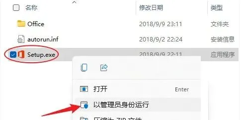4.鼠标右键点击【Setup】选择【以管理员身份运行】。