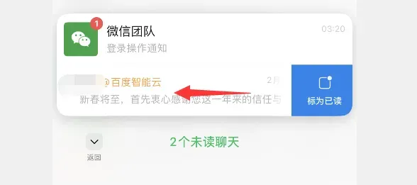 被灰度测试的用户,双击左下角的微信,它会弹出所有未读的信息,并且告诉你多少消息未读,也能快速对未读消息左滑快速已读,不想查看这些消息,可点击返回按钮,小红点依旧保持显示。