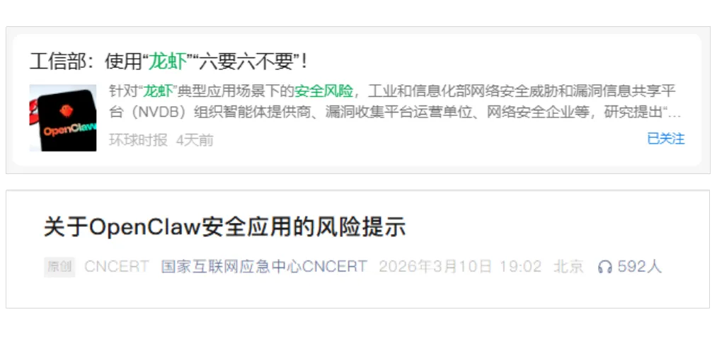 但令人始料未及的是,龙虾爆红不足一周,国家互联网应急中心、工信部相继发布安全风险提示,直指其默认安全配置脆弱、权限过高、技能包审核缺失等隐患,可能导致系统受控、数据泄露,各大平台随即启动下架整改,这场AI 狂欢以安全警报仓促冷却。