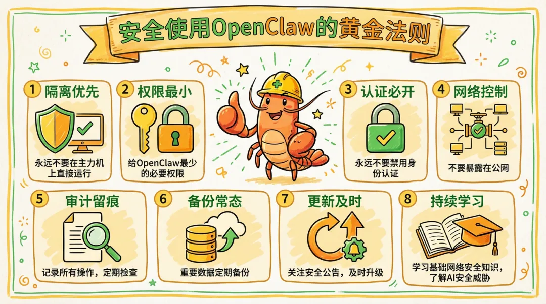 如果你仍然希望尝试OpenClaw,请务必遵循以下原则: