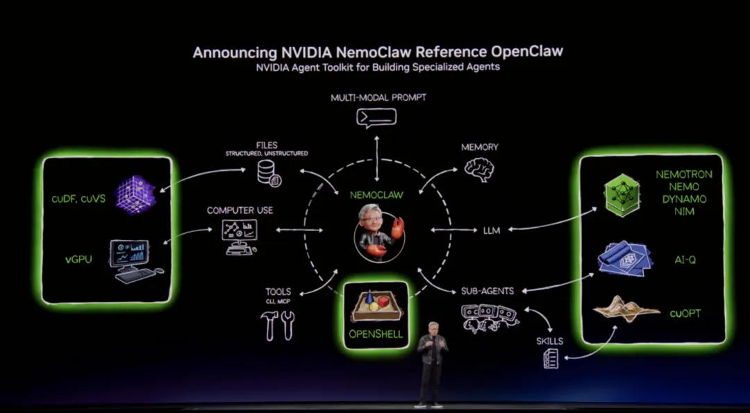 NVIDIA 在 GTC 2026 丢出的 NemoClaw(可理解为 OpenClaw 的企业级版本),核心卖点并不是“更强的代理能力”,而是把企业最在意的那件事补齐:把代理关进笼子里,还能让它干活。TechCrunch 将它描述为“在 OpenClaw 之上加入企业级安全与隐私能力”的开源平台;NVIDIA CEO 黄仁勋甚至把它上升到“每家公司都需要一个 OpenClaw 策略”的高度。[^1]