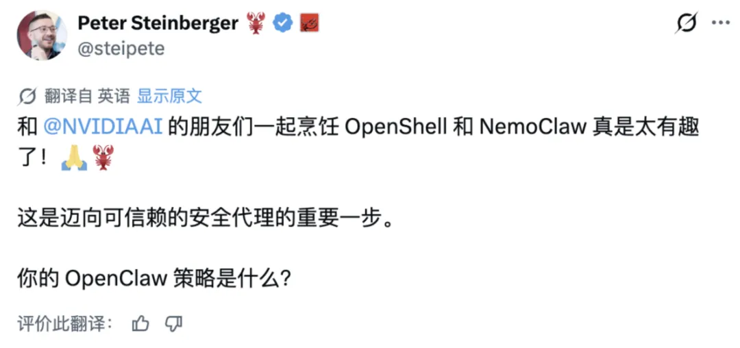 参考链接:[^1]: TechCrunch《Nvidia’s version of OpenClaw could solve its biggest problem: security》https://techcrunch.com/2026/03/16/nvidias-version-of-openclaw-could-solve-its-biggest-problem-security/[^2]: Conscia 博客《The OpenClaw security crisis》https://conscia.com/blog/the-openclaw-security-crisis/[^3]: Microsoft Security Blog《Running OpenClaw safely: identity, isolation, and runtime risk》https://www.microsoft.com/en-us/security/blog/2026/02/19/running-openclaw-safely-identity-isolation-runtime-risk/[^4]: TechBuzz《Nvidia’s NemoClaw tackles OpenClaw’s security problem》https://www.techbuzz.ai/articles/nvidia-s-nemoclaw-tackles-openclaw-s-security-problem