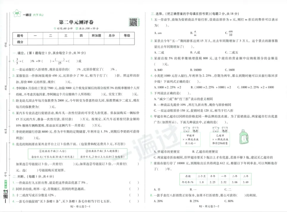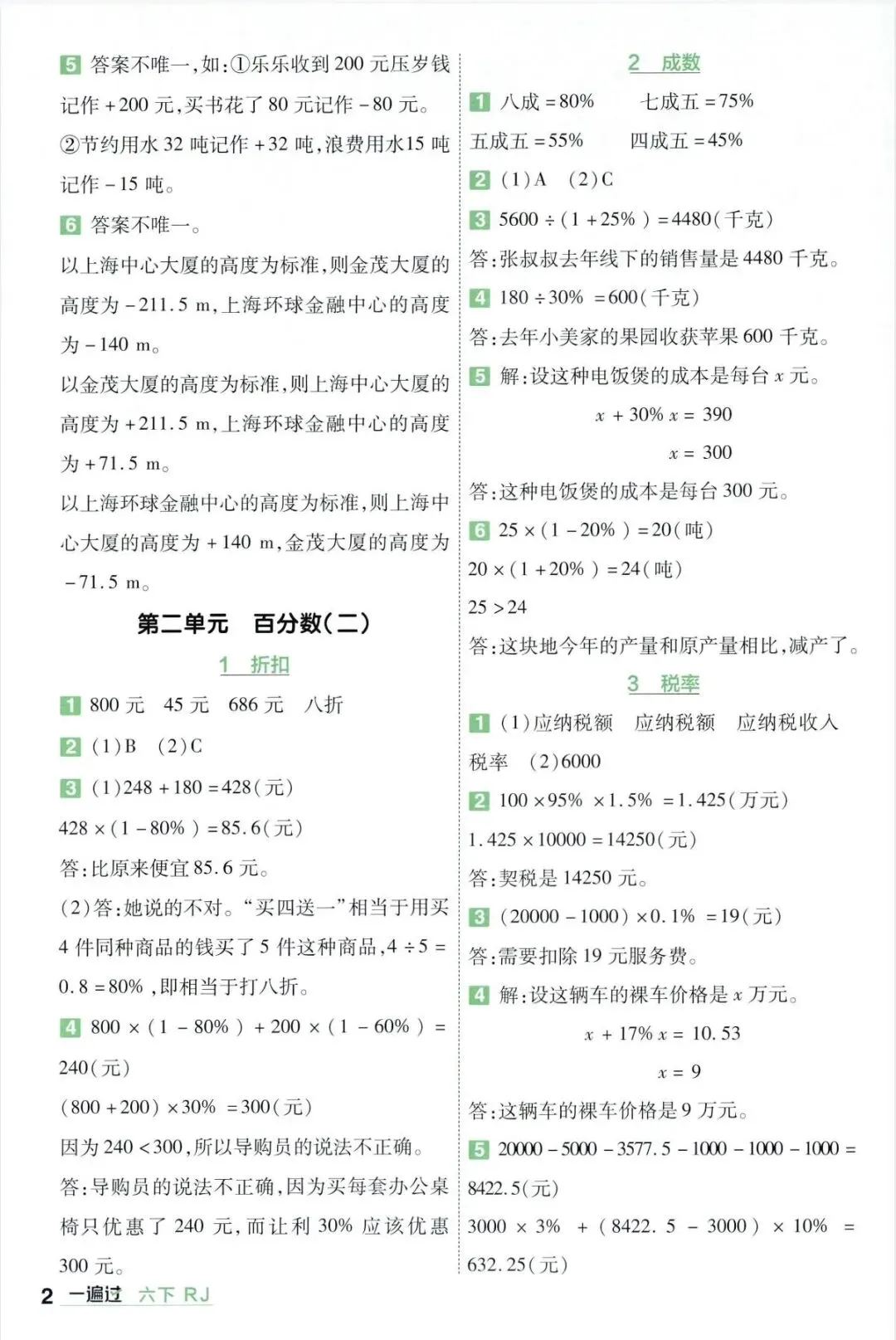 【可下载】2026年春人教版六年级下册数学《练习帮》同步一课一练