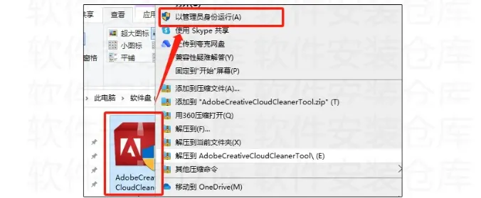 2.打开解压好的文件夹,鼠标右键以管理员身份运行AdobeCreativeCloudCleanerTool.exe程序。