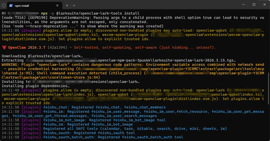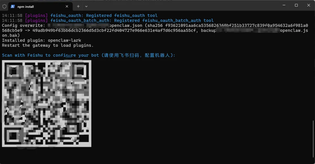 npx -y @larksuite/openclaw-lark-tools install在如下的界面稍等片刻: