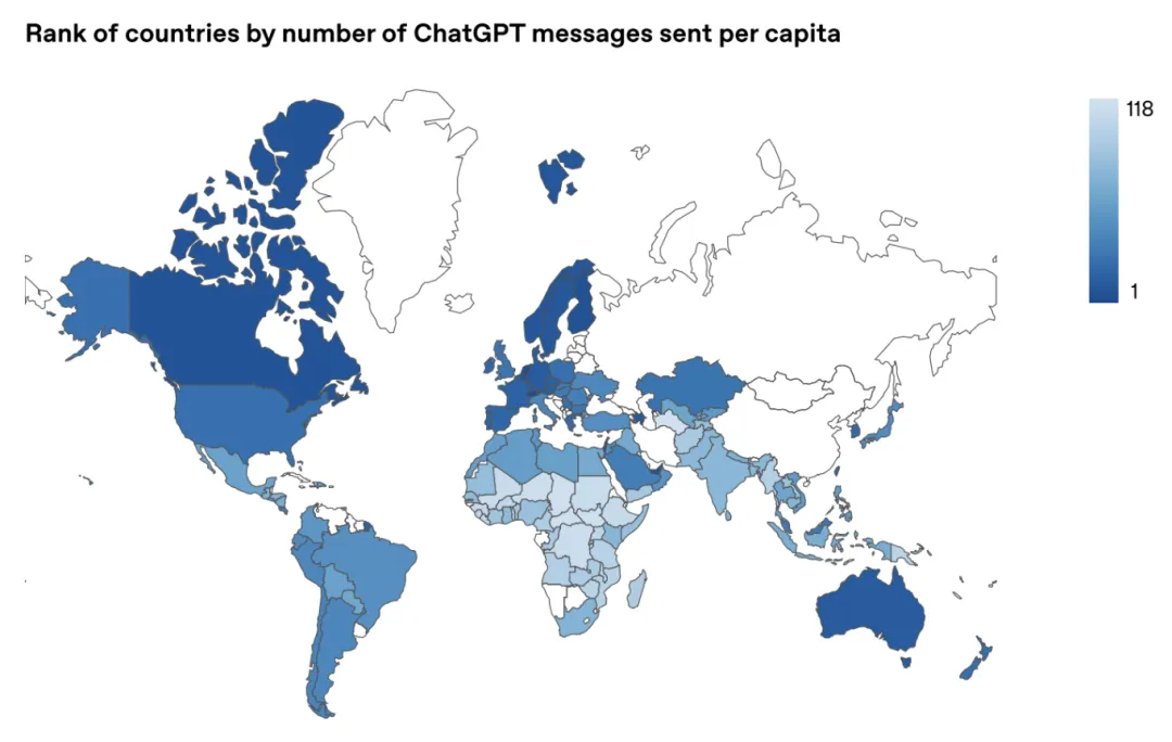 向ChatGPT询问编程相关问题的比例,接近全球中位数的三倍