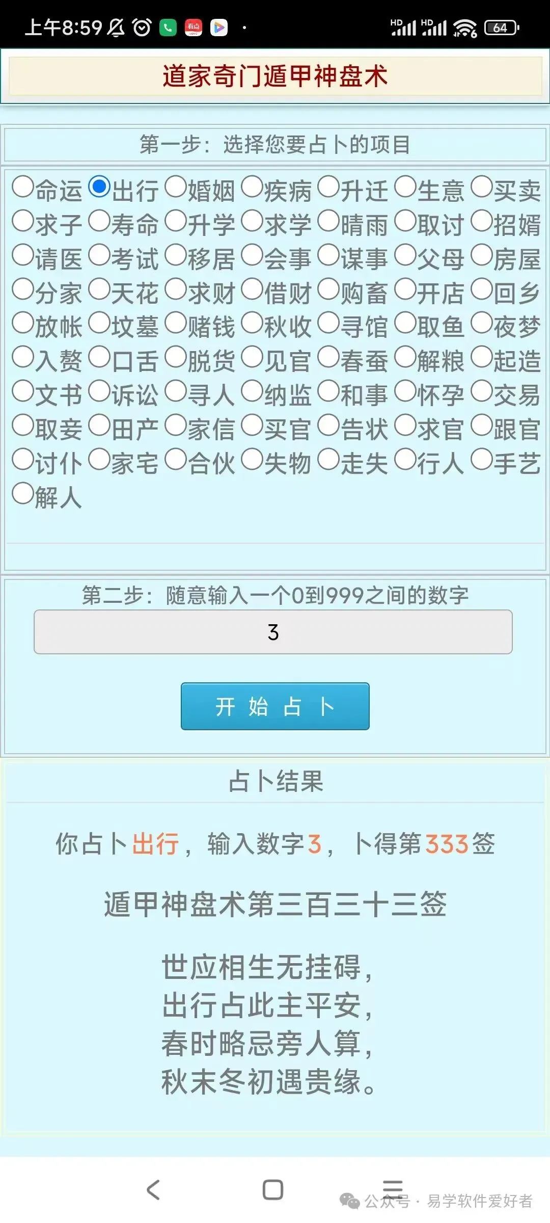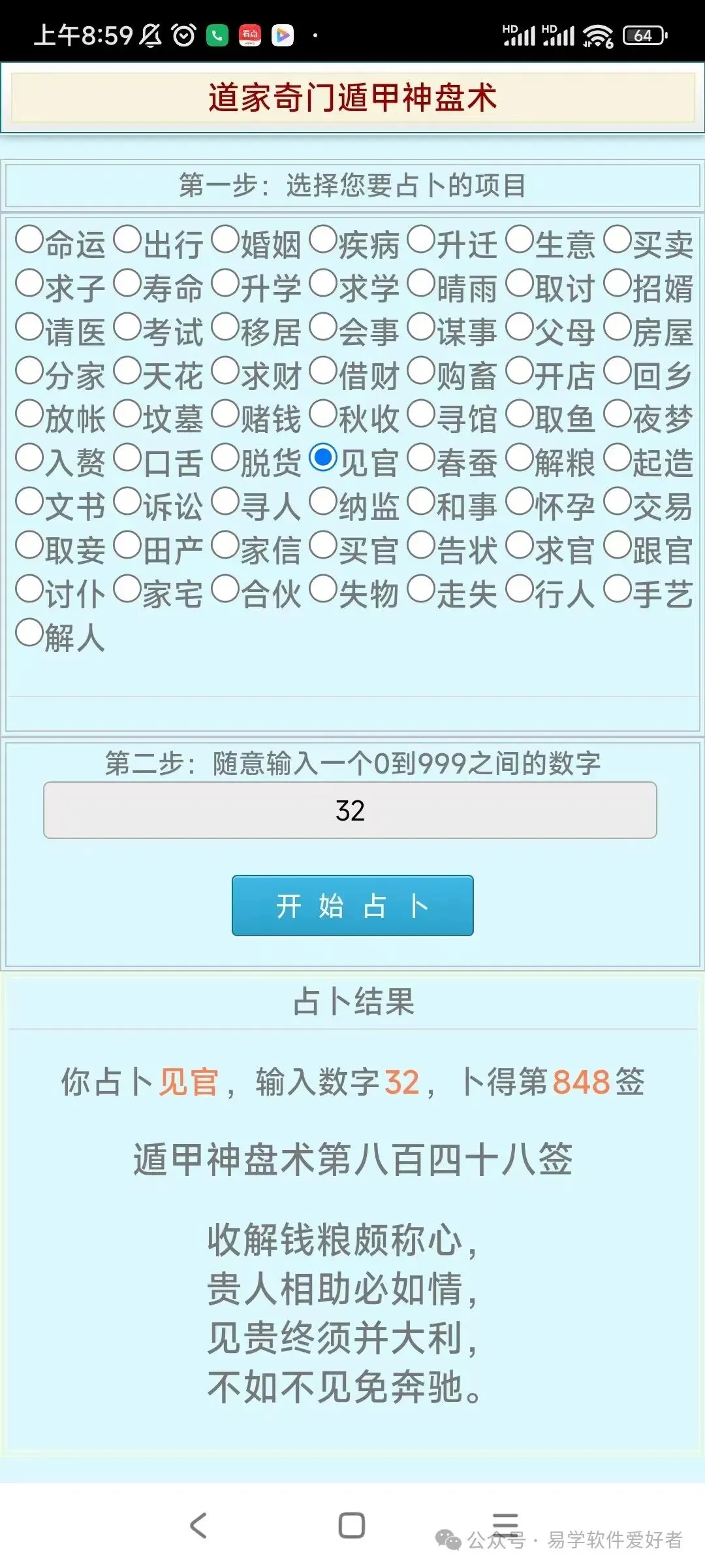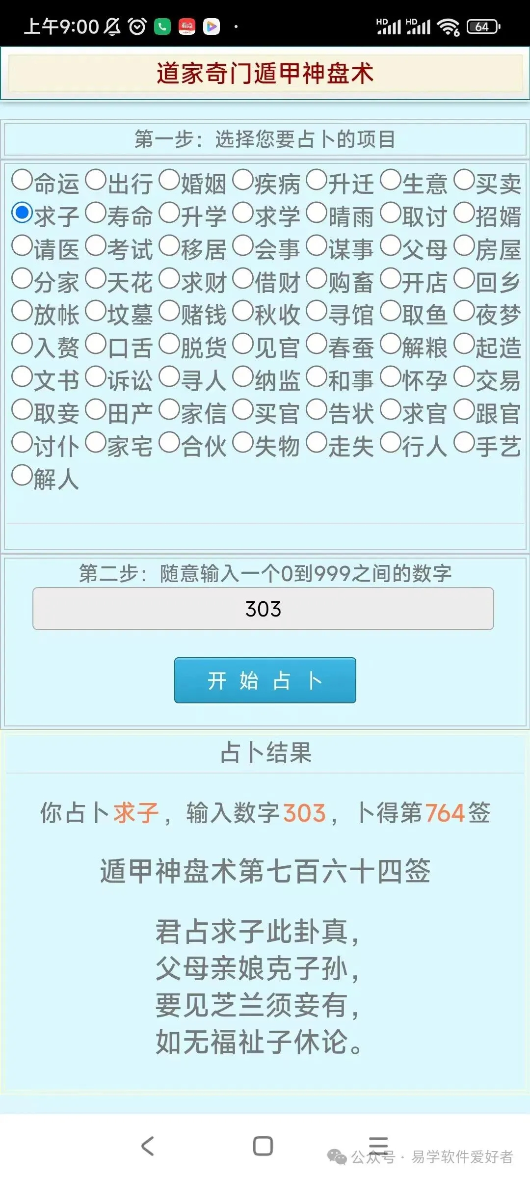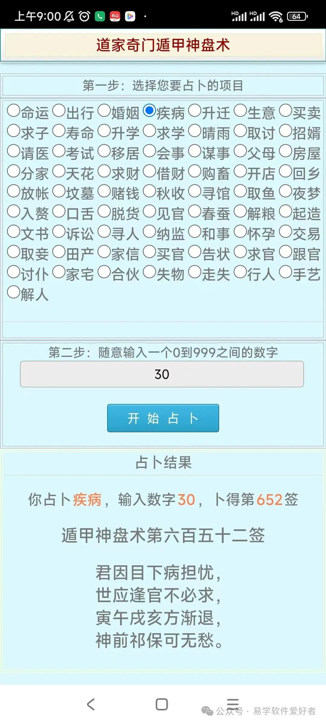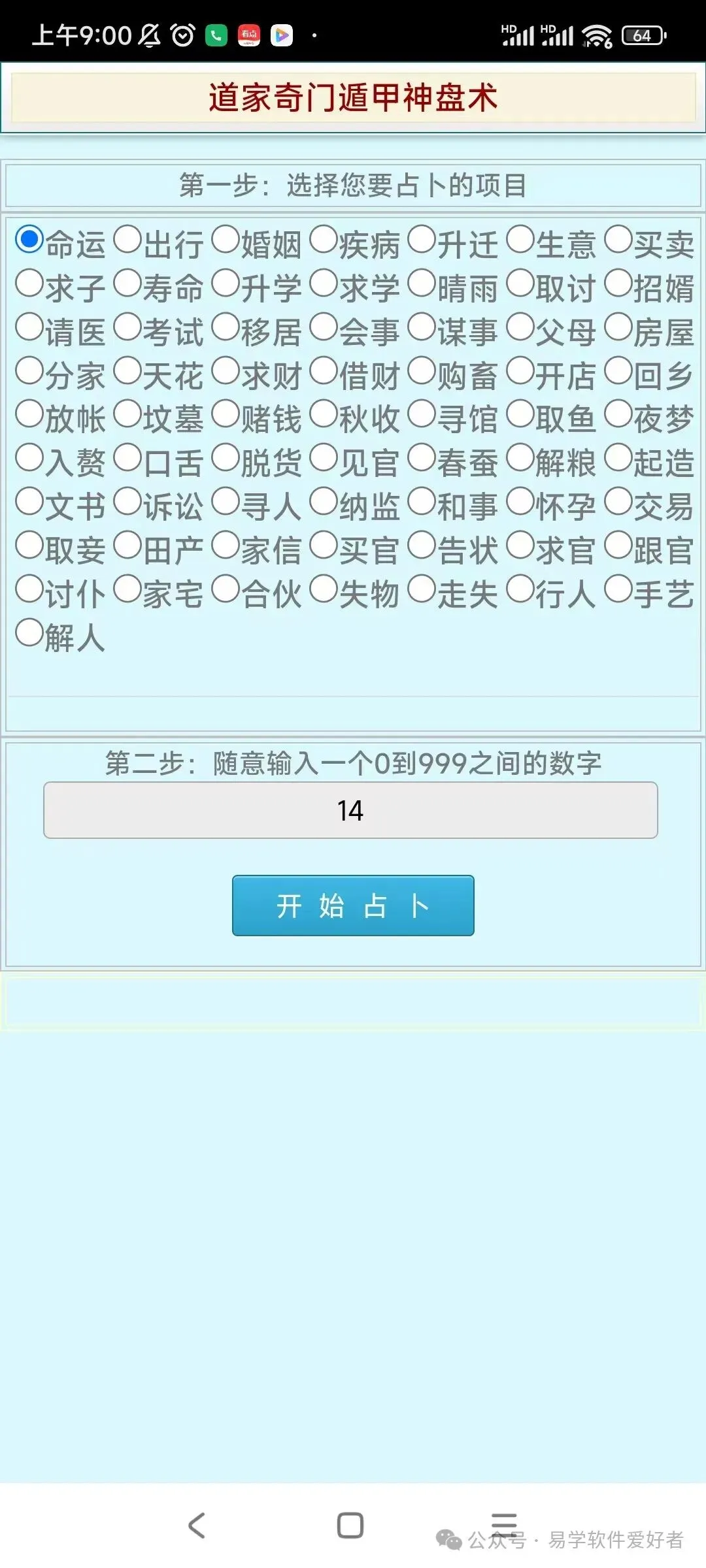 手机版道家奇门遁甲神盘术占卜软件,卖38元,需要的加微信:A-118774