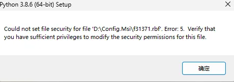 python卸载出现Couldnot set file security for file Error 5直接卸载发现问题正确卸载方式找到下载python位置,如3.8.6在这里右键以管理员身份运行在弹出的选项中有三个,选中uninstall即可