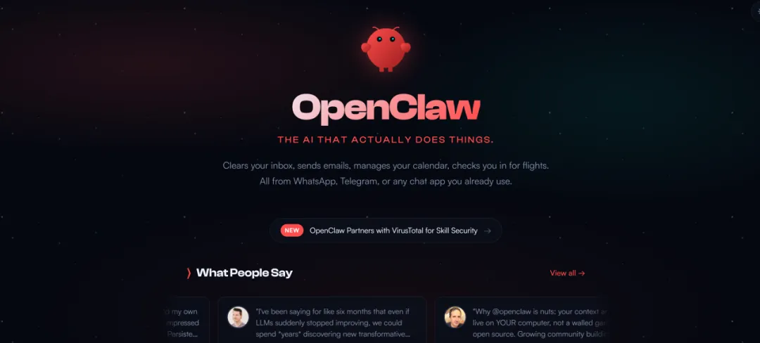 简单说,OpenClaw是一个开源的AI智能体——一个有“手”有“脑”的超级助手。