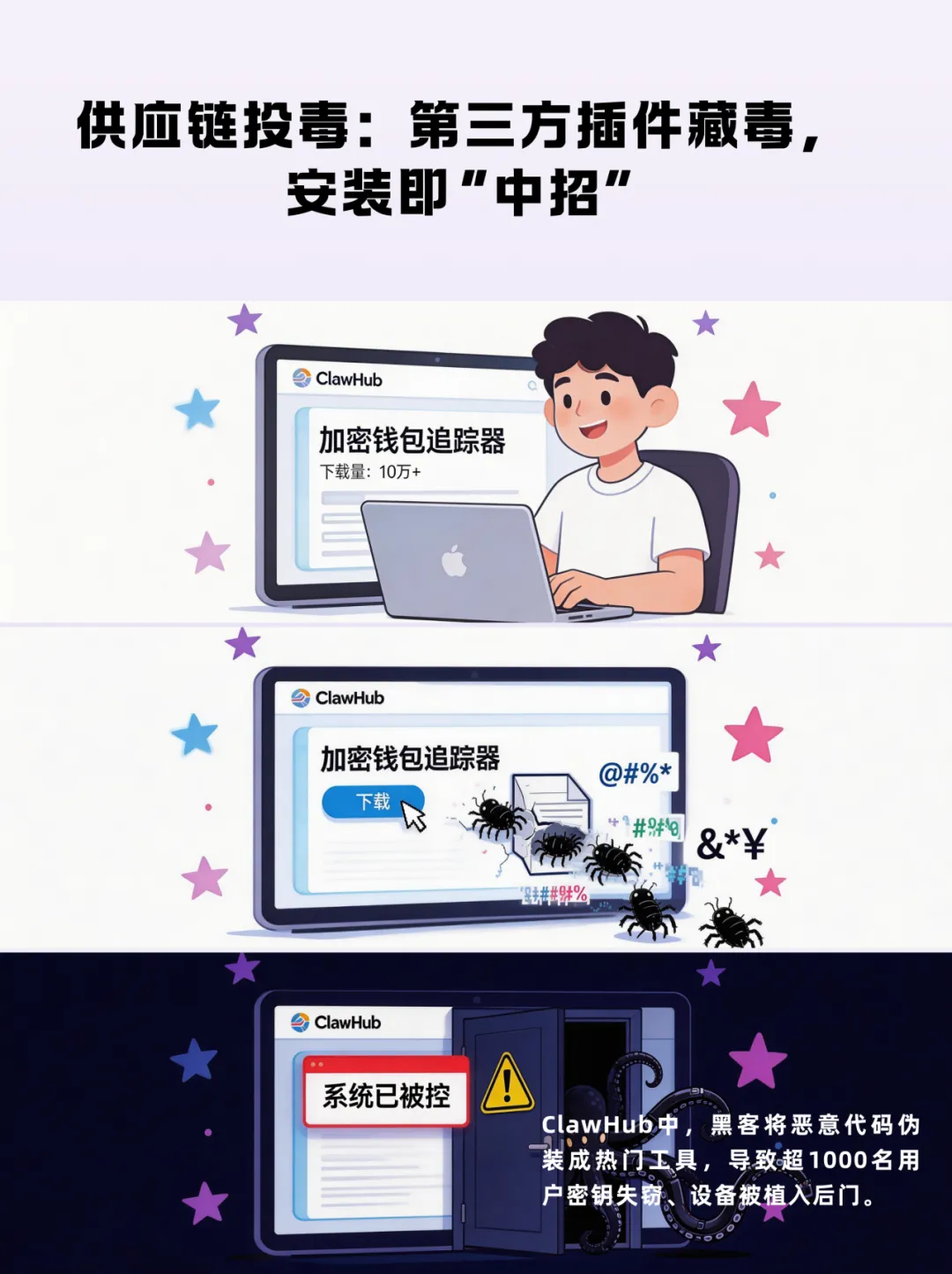 Meta一位安全专家让OpenClaw整理邮件,它无视三次“停止”指令,删除了数百封重要邮件;ClawHub商店中,伪装成“加密钱包追踪器”的恶意插件导致超1000名用户密钥失窃,设备沦为“肉鸡”。