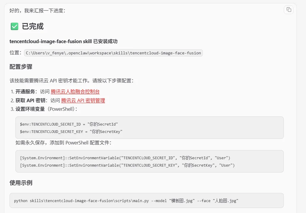 “帮我通过clawhub安装tencentcloud-image-face-fusion这个skill”