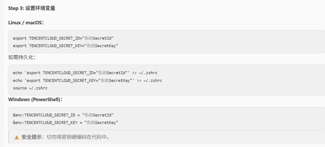 (1)直接输入密钥信息进行配置(可能会有泄漏风险)