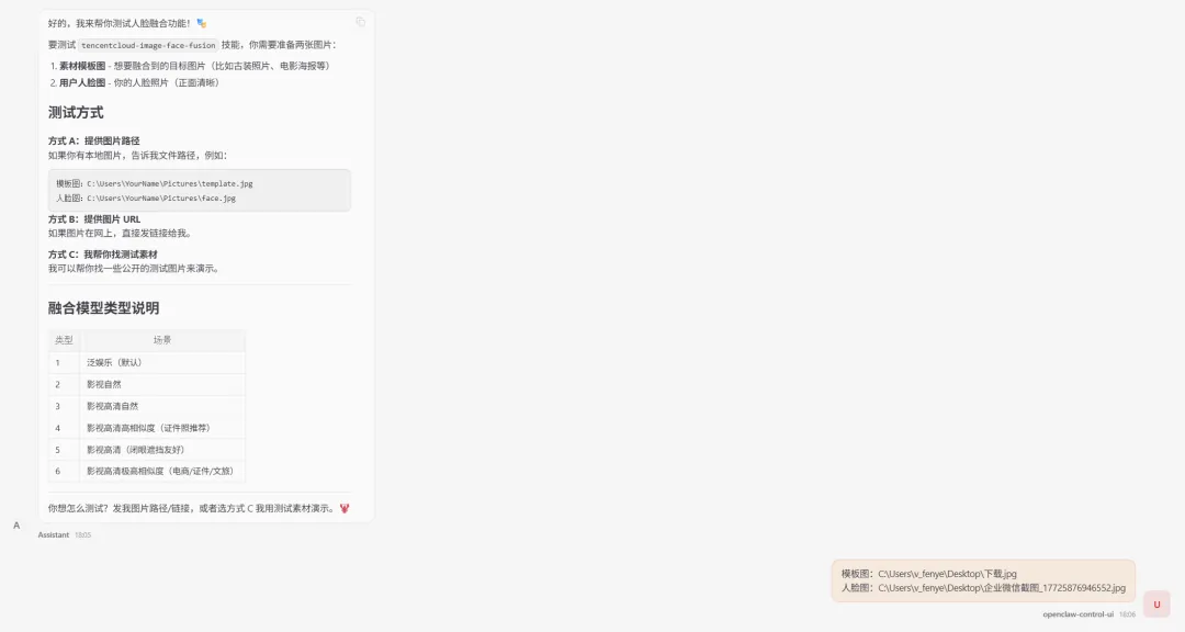 除了生3D,通过 OpenClaw 的Skills机制,用户安装生图、生视频、人脸融合等Skill,同样可以一句话实现——品牌海报、产品图、视频制作与泛娱乐营销玩法,无需搭建复杂工作流,不同业务场景,按需加载,即用即得。