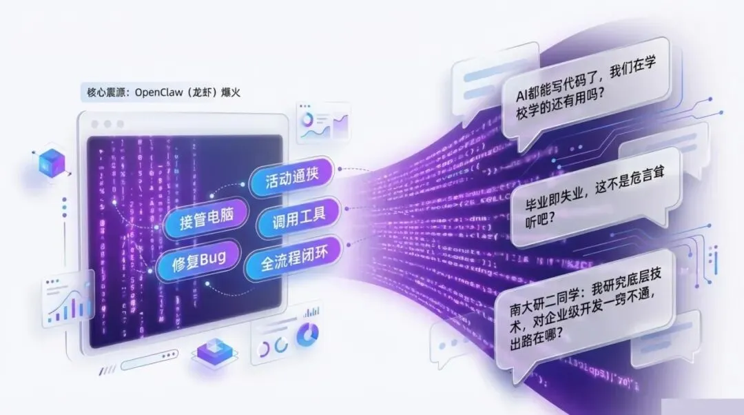 还有一位南大研二的同学找到我,他说:自己在实验室研究的都是很底层的东西,对企业级应用开发基本一窍不通。现在AI横空出世,他完全不知道自己的出路在哪里。