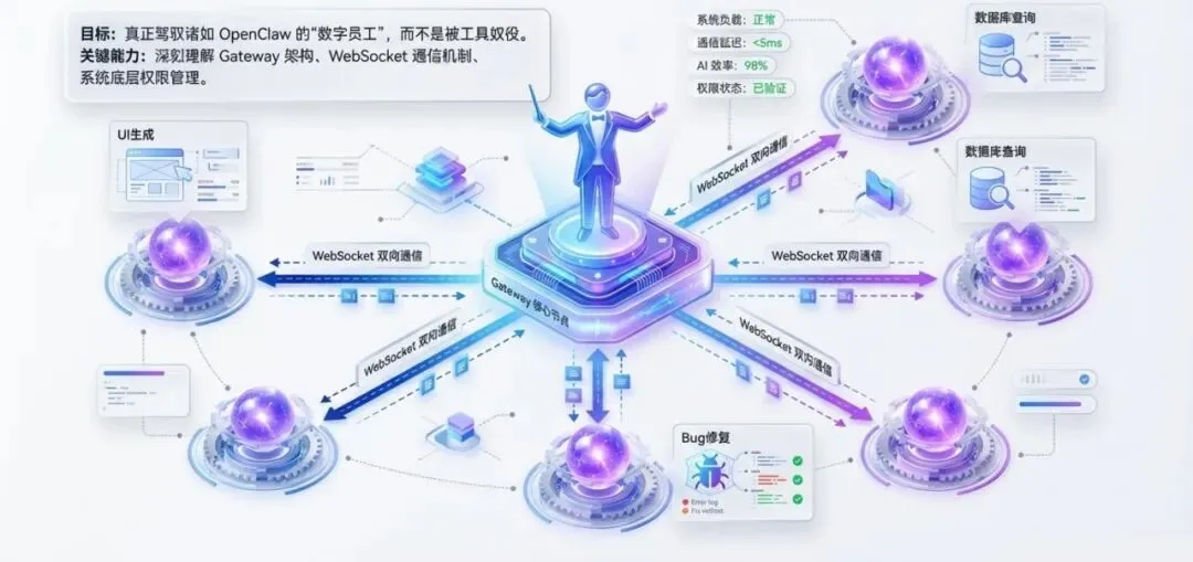 最后,你是“人机协作”的调优师:能够理解OpenClaw背后的Gateway架构、WebSocket通信和系统权限管理的同学,才能真正驾驭这些“数字员工”,而不是被工具奴役。