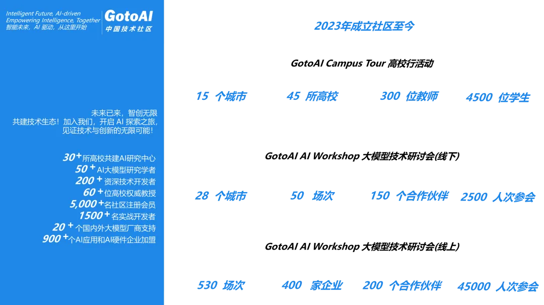 GotoAI 中国技术社区成立于深圳南山高新区,由原微软技术团队发起,汇聚 AWS、Google、腾讯、IBM、阿里云、字节跳动等大厂技术专家,是国内极具影响力的 AI 技术生态社区。