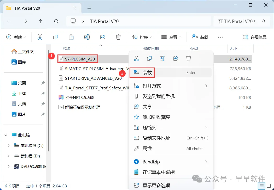 20、找到【S7-PLCSIM_V20】文件,右键点击【装载】