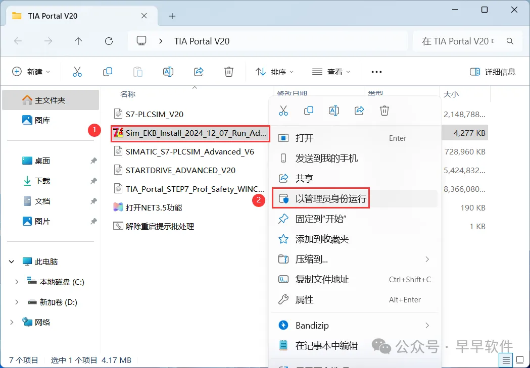 18、回到TIA Portal V20文件夹,找到【解除重启提示批处理】文件,右键选择【以管理员身份运行】它