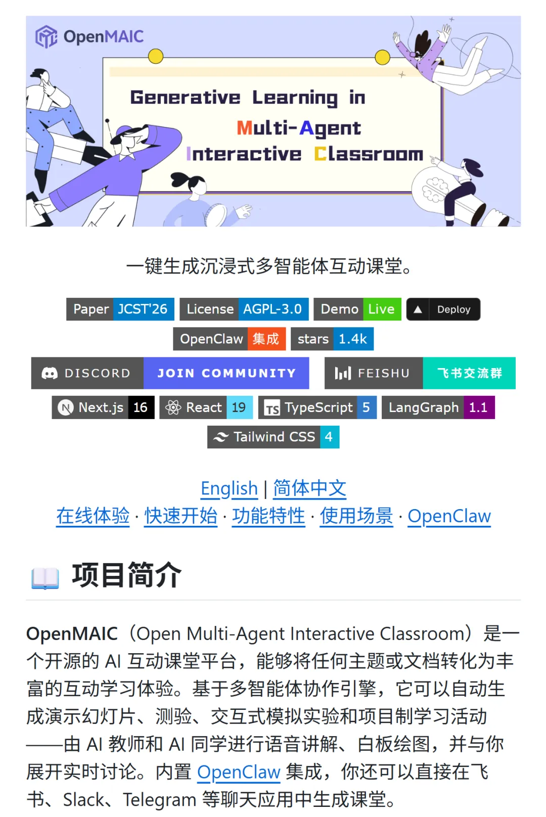 不过最近,清华大学的团队开源了一个叫 OpenMAIC 的神仙项目,号称教育界的 OpenClaw!