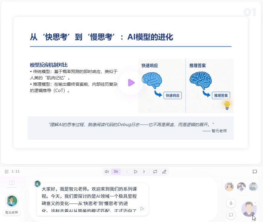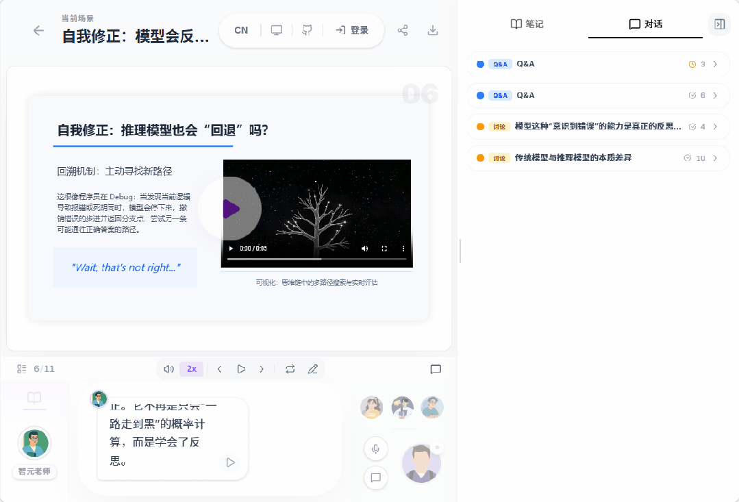 在上课过程中,对于一些关键地方。OpenMAIC 还会安排不同的方式来更直观的带我们快速了解。